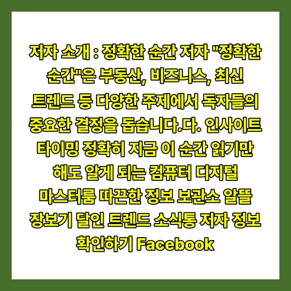 저자 "정확한 순간"은 부동산, 비즈니스, 최신 트렌드 등 다양한 주제에서 독자들의 중요한 결정을 돕습니다.다.