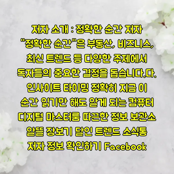 저자 "정확한 순간"은 부동산, 비즈니스, 최신 트렌드 등 다양한 주제에서 독자들의 중요한 결정을 돕습니다.다.