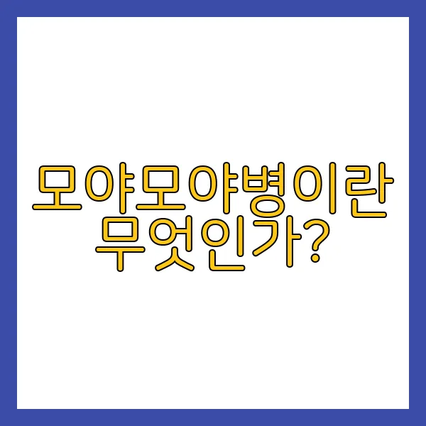 모야모야병은 뇌혈관 질환의 일종으로, 주로 뇌를 공급하는 혈관이 점진적으로 좁아지거나 막히는 현상입니다. 이로 인해 뇌혈류가 감소하여 심각한 결과를 초래할 수 있습니다. 이름의 유래는 일본어 '모야모야(もやもや)'에서 비롯되었으며, 이는 '연무(煙霧)'라는 뜻으로, 혈관이 늘어져서 '연기처럼' 보이는 모습에서 따온 것입니다. 🤔