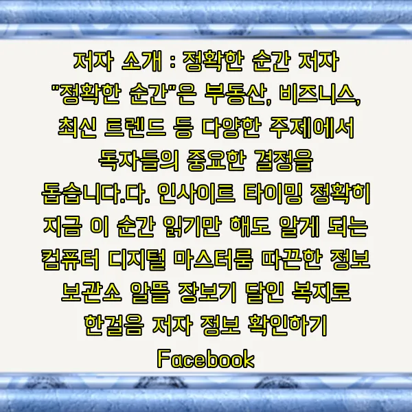 저자 "정확한 순간"은 부동산, 비즈니스, 최신 트렌드 등 다양한 주제에서 독자들의 중요한 결정을 돕습니다.다.