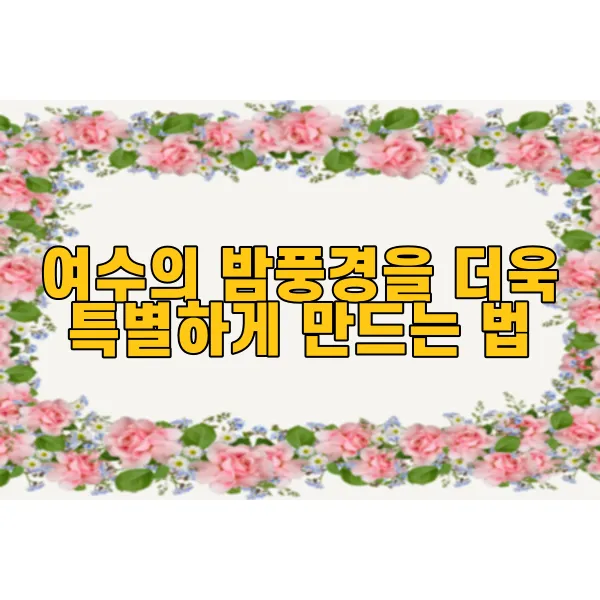 여수의 밤은 언제나 로맨틱하고 매력적이에요. 그런데 그 밤을 더욱 특별하게 만들어주는 몇 가지 방법이 있어요! 여수 밤바다를 방문하신다면, 절대 놓치지 말아야 하는 몇 가지 특별한 경험들을 소개할게요.